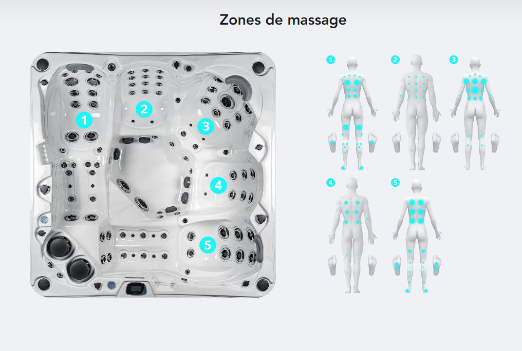 Notre SPA SYDNEY 5 places 3 assises 2 allongées vous est proposé par Valdaine Piscine